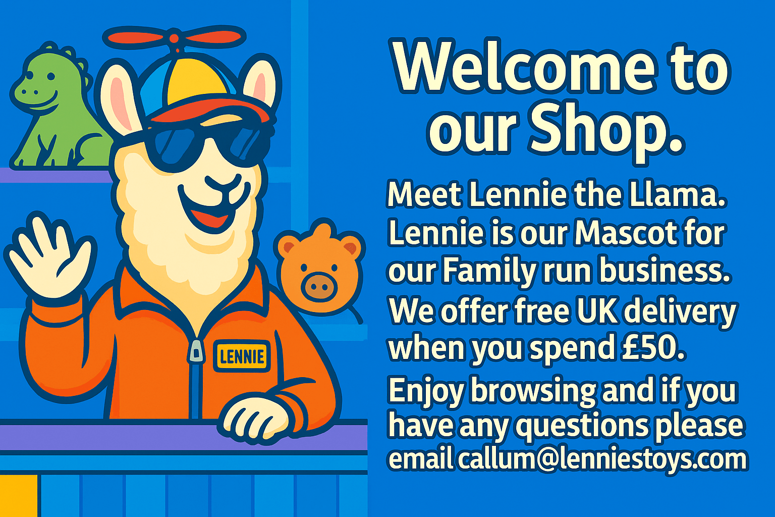 Lennie’s toys is a small family run, independent toy shop established in 2020 by Callum Sutton. Callum has always had a passion for toys since he was a little boy. He started his first toy shop aged 16, then moved on to explore other interests. When it came to setting up a new business, as an adult, he was instinctively drawn back to toys.