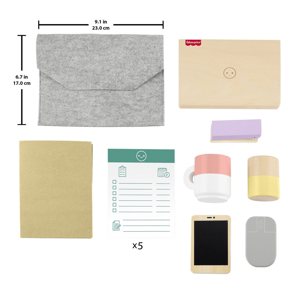 Introducing the Fisher Price Wooden Work From Home Set, a charming playset designed to inspire creativity and role-playing for children. This high-quality wooden set combines elements of imaginative play with essential life skills, making it a perfect addition for any young one's collection.
