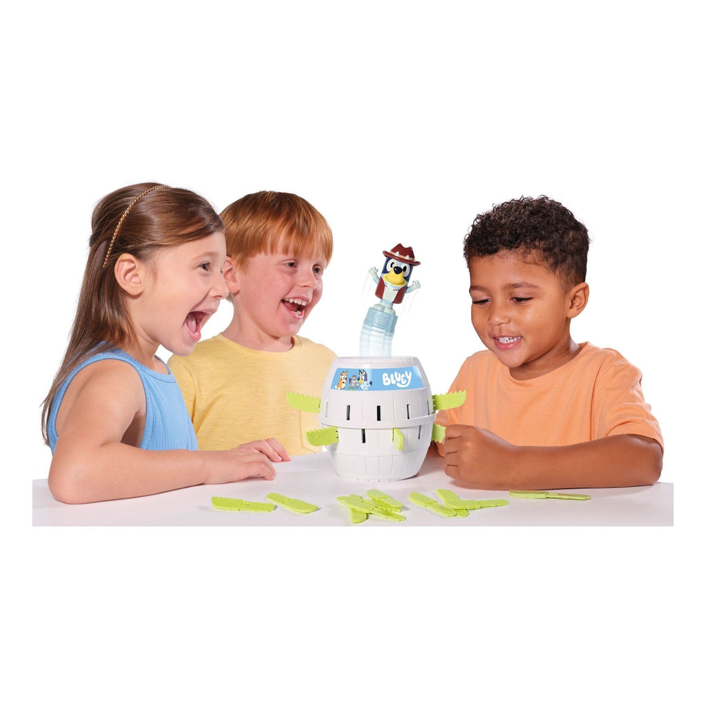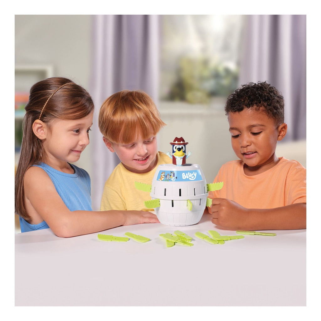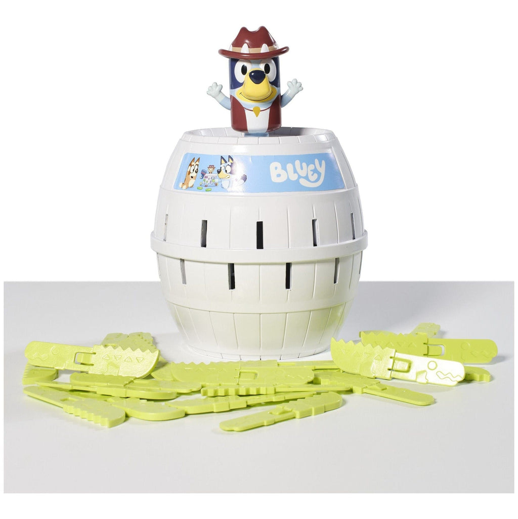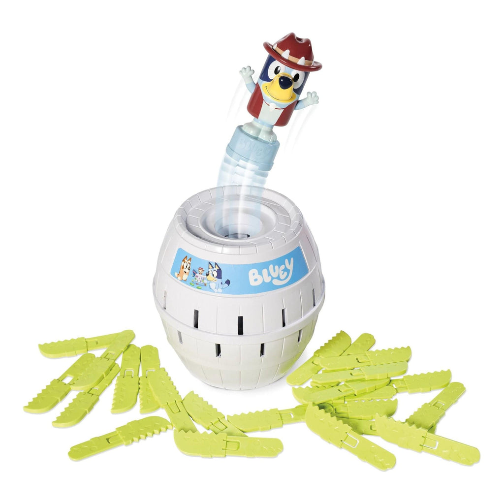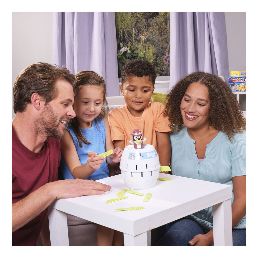 Up to four players slide crocodile swords into the barrel. annnnnd — Oh, biscuits! There’s no stopping Bluey popping up, turning a quick round into giggles and surprise.