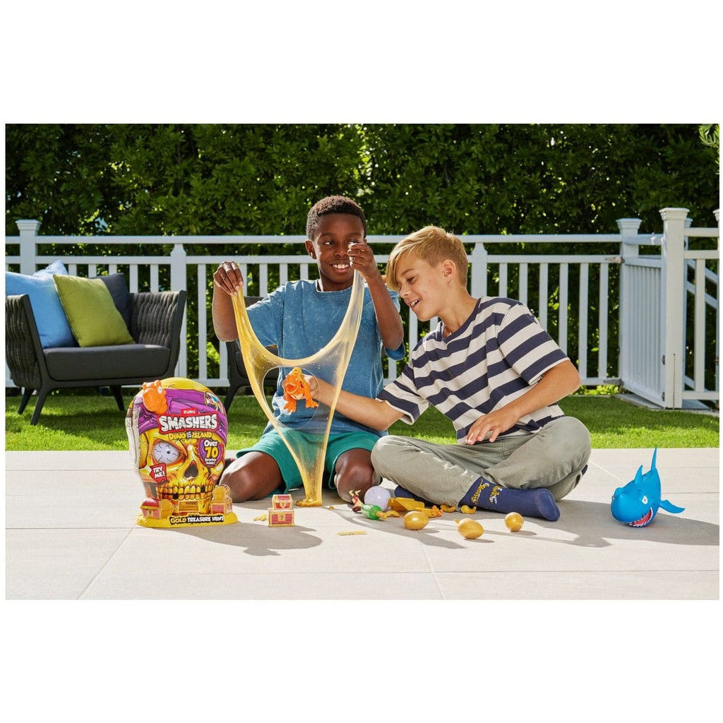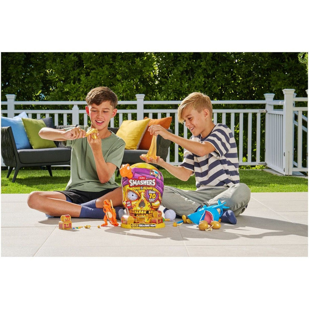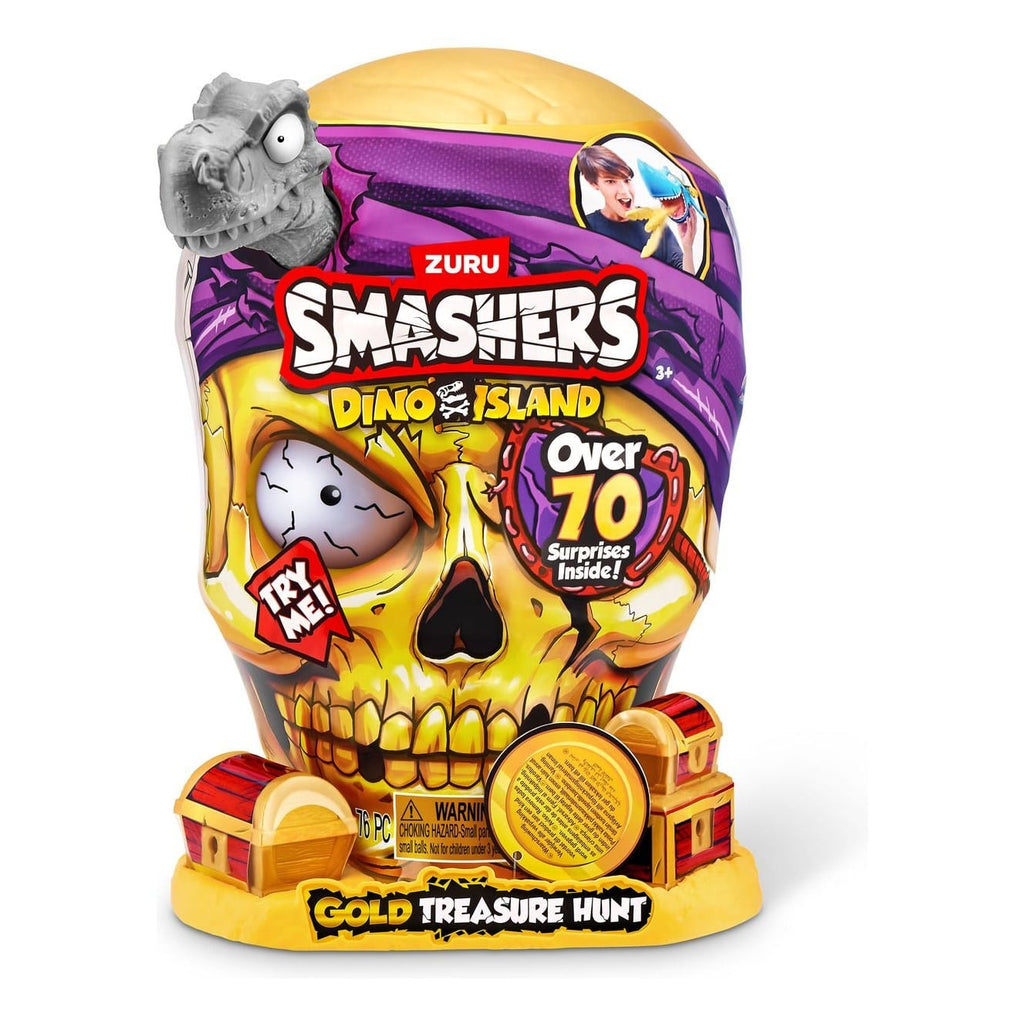 Unlock a treasure-chasing adventure with Smashers - Dino Island S1 Gold Treasure Hunt. X marks the spot as 70+ surprises await to challenge your courage and curiosity. Dive into a thrilling quest where mighty dinosaurs collide with fearless sharks, and land meets sea in a race to defend ancient treasures of gold and gems.