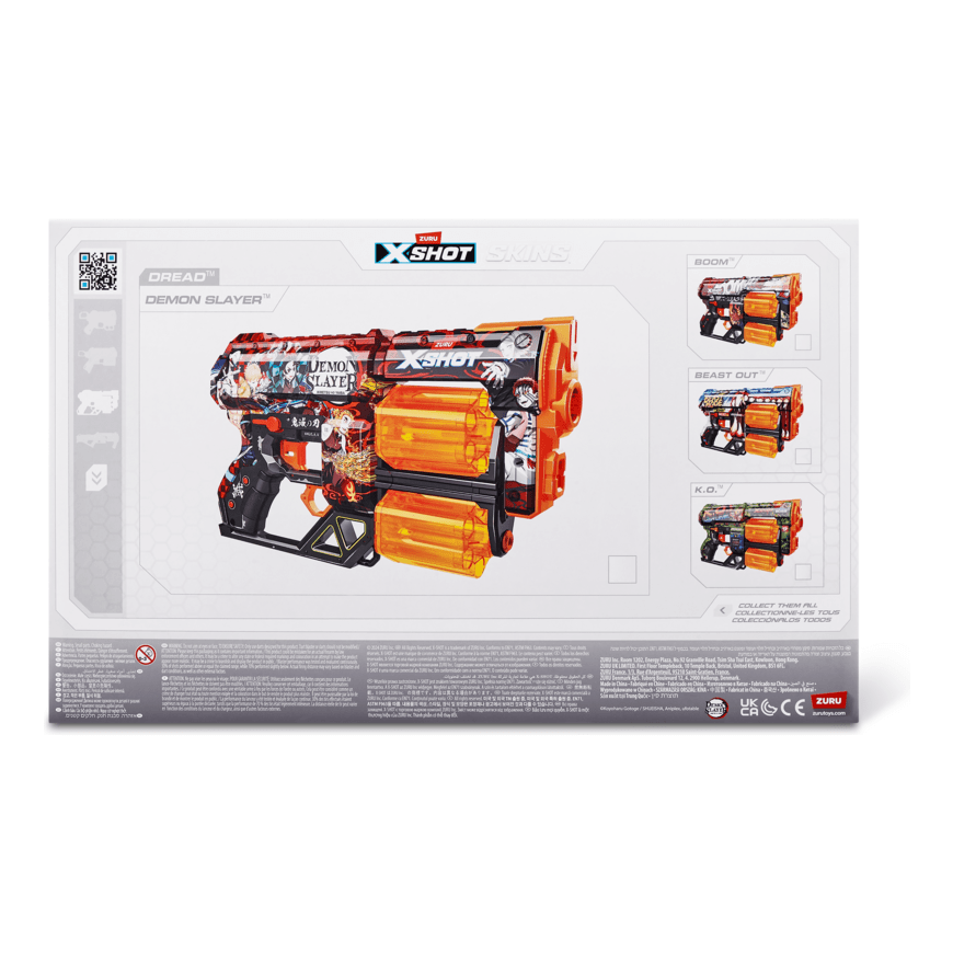 Designed for fans who crave both style and performance, the XSHOT Skins Dread Demon Slayer blends eye-catching aesthetics with practical blasting power. The standout feature is the double rotating barrels—the Dreads’ signature setup that adds a dramatic look and gives you a rapid, chaotic-fire feel during skirmishes. With a 12-dart capacity, you stay in the fight longer and enjoy quick reloading rhythm.