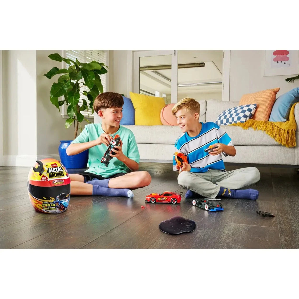 Metal Machines Speed Heroes Helmet Playset Series 1 puts the thrill of the race track in your hands. Jump into the driver’s seat of your own custom race car with Metal Machines Speed Heroes. Break open the race helmet to discover 20+ surprises inside to build your very own custom race car. Customize the design and body of the race car as you build, and watch your Speed Hero come to life with dynamic features that ignite imaginative play.