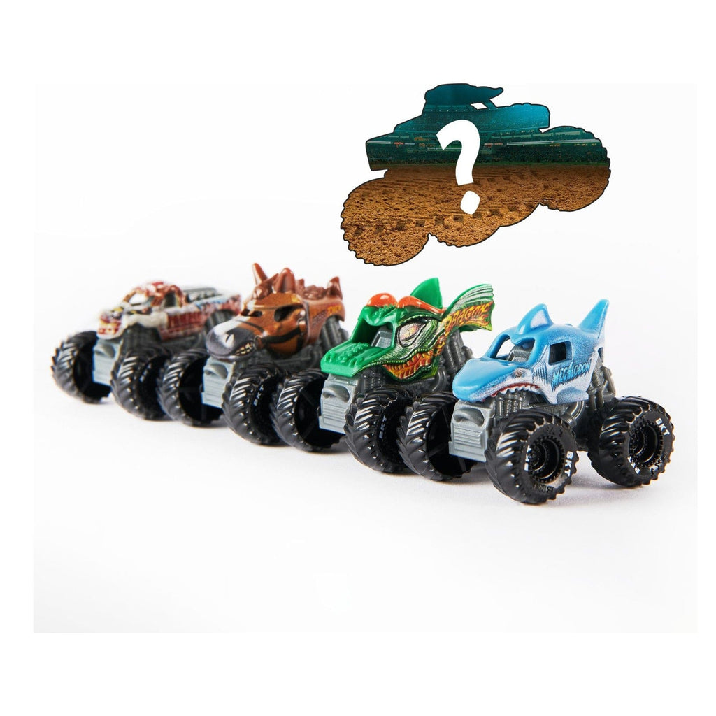 Five mini Monster Jam trucks, each with distinctive designs inspired by the real arena stars, come together in a bright, collectible set.