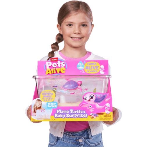 Your Mama Turtle Surprise is here to hatch her adorable family! How many baby turtles will she reveal? 2, 3, or even 4? Plus, there may even be other surprises to discover along the way! When she’s not caring for her babies, Mama Turtle comes alive and swims in a full tank of water, bringing endless fun to playtime and display.