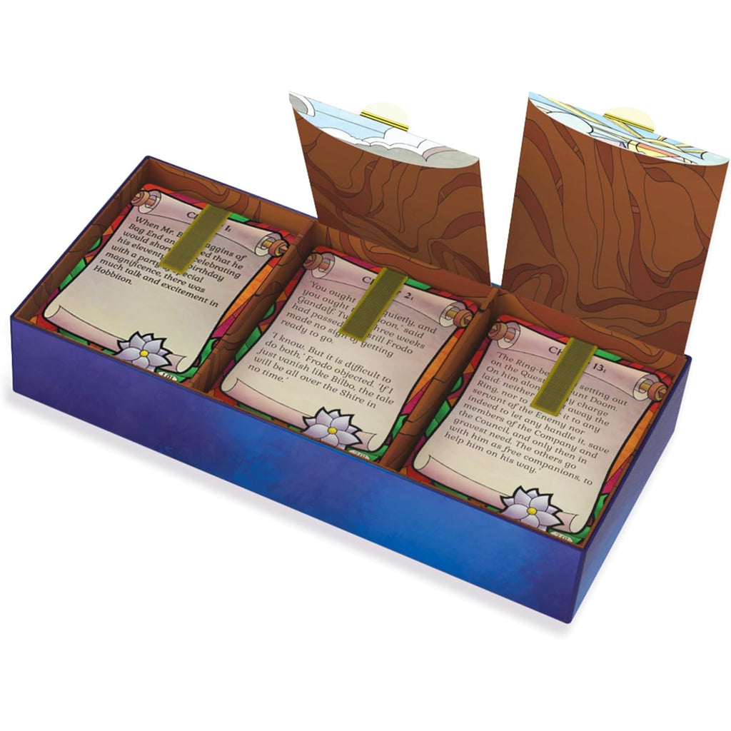 In this cleverly crafted trick-taking experience, every chapter introduces new challenges, characters, and items. As you progress, you slowly reveal cards that build toward assembling The Fellowship, weaving strategic choices with epic storytelling. To heighten immersion, each chapter starts with a Story Card featuring authentic text from the book, setting the mood and guiding your adventure.