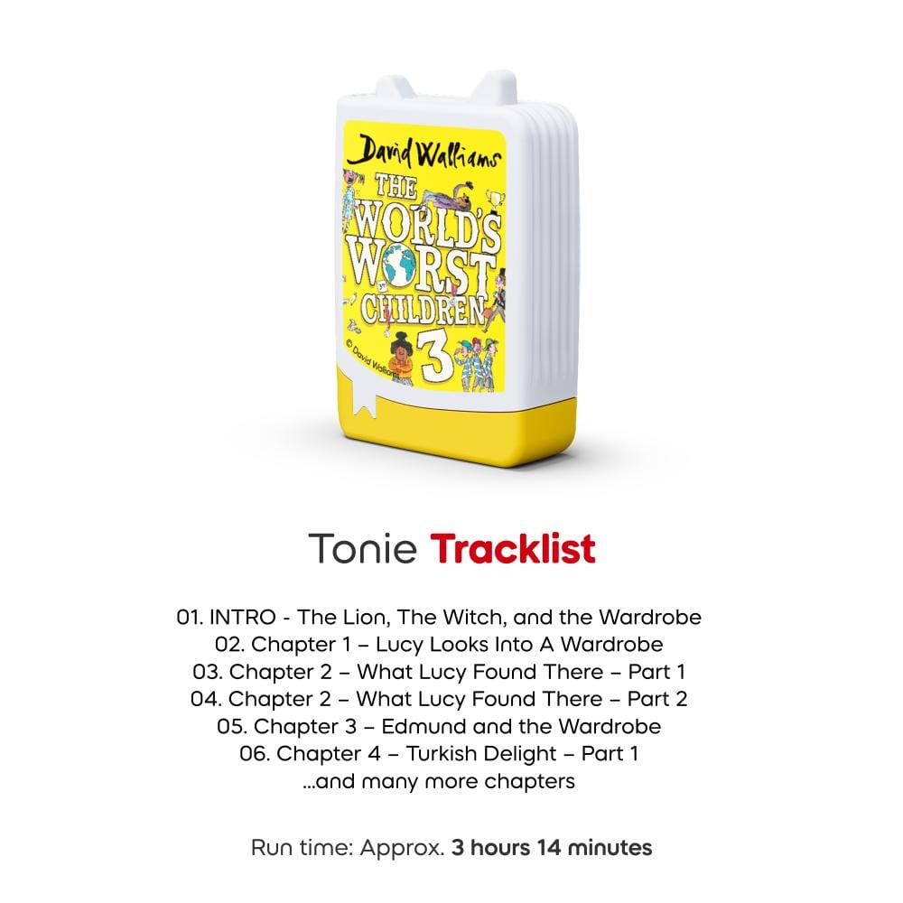 Meet this Tonies Figure featuring David Walliams' The World’s Worst Children 3, bringing ten horrid and hilarious tales to young listeners. Perfect for children who love mischievous stories, it's designed to work with a Toniebox for easy, screen-free storytelling.