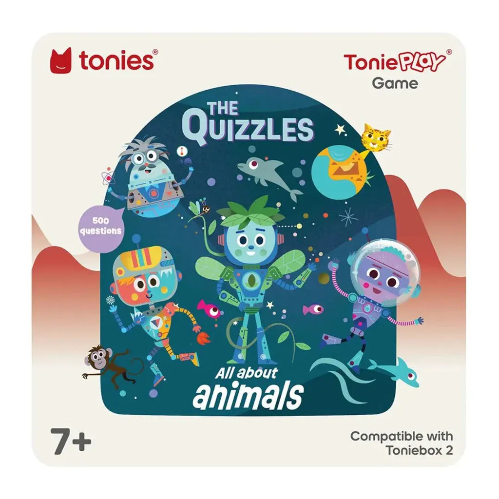 Take a cosmic safari with Tonies Tonieplay The Quizzles: All About Animals. This playful, educational game turns the Toniebox 2 into a galaxy of animal trivia, designed for ages 7 and up. The Quizzles—quirky android quizmasters—challenge kids with 500 questions about jungle beasts, arctic dwellers, ocean creatures, and more. Answer correctly to power up planets and unlock fascinating animal facts, then face Quentin Quizzle in the ultimate round for a thrilling finale.